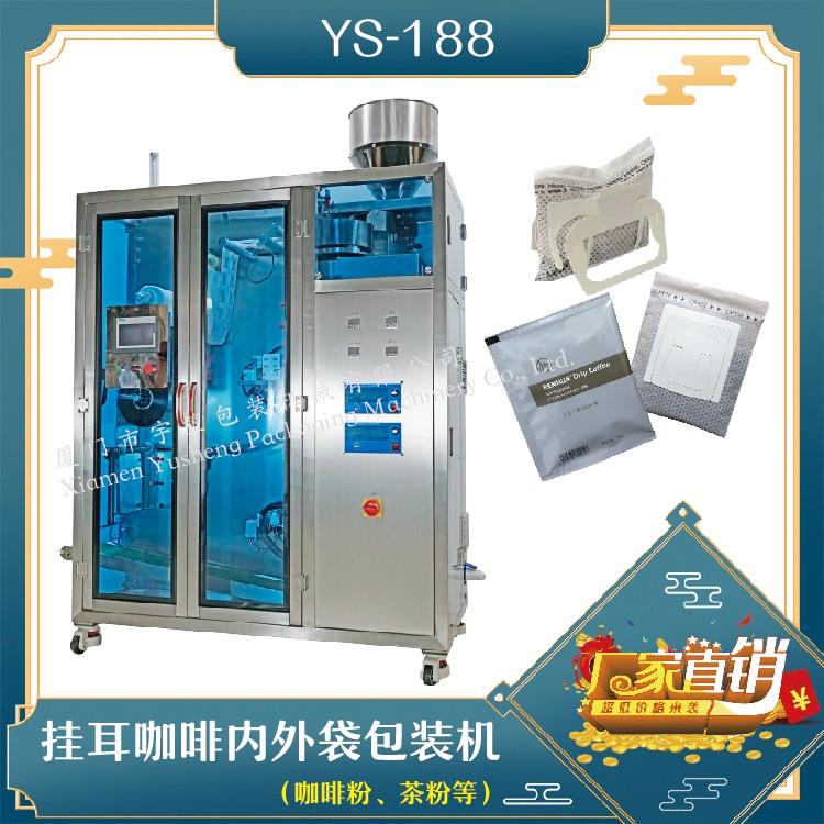 YS-188 掛耳咖啡內(nèi)外袋包裝機(jī)(新框式)特 點 1、適用于咖啡粉、小顆粒狀物料。2、采用特定的掛耳式濾網(wǎng)、三邊封口、直接掛在杯子邊緣,咖啡沖泡效果更好,且袋型美觀,目前國外市場非常流行。3、本機(jī)具有自動完成制袋、計量、充填、封合、分切、計數(shù)、打印批號等功能。4、內(nèi)袋為無紡布掛耳袋,沖泡方便且衛(wèi)生。封口采用先進(jìn)…