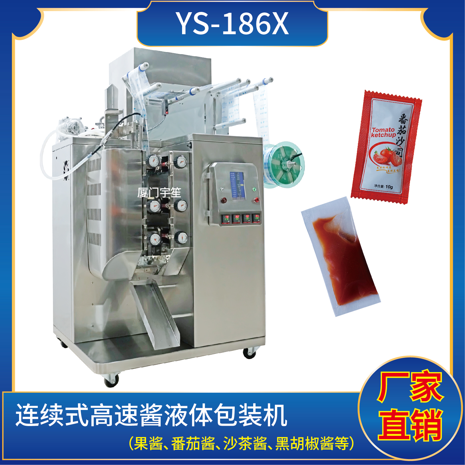 Suitable for the metering and packaging of pastes and liquids like tomato sauce, curry sauce, sesame paste, oil sachets, vinegar sachets, and chili oil.