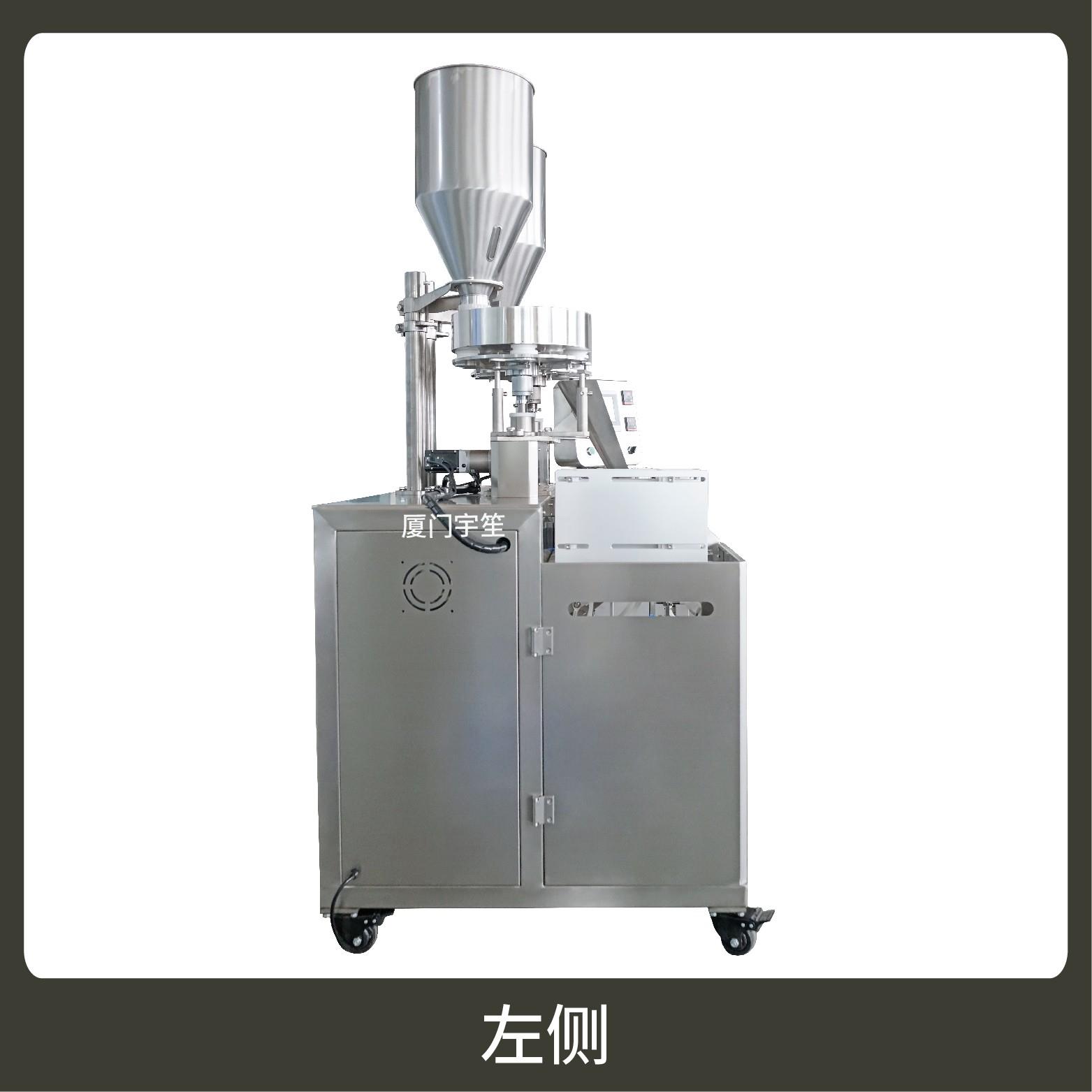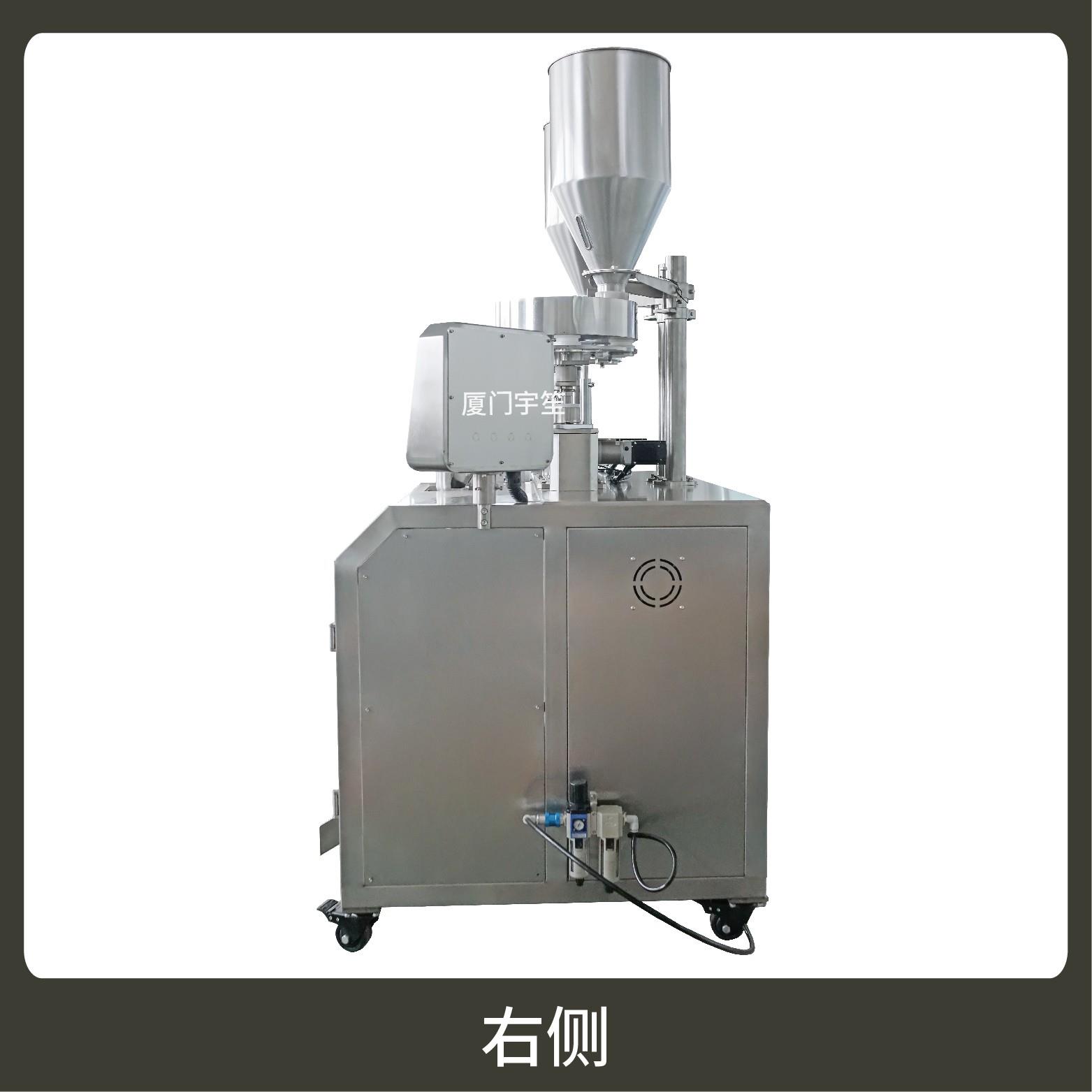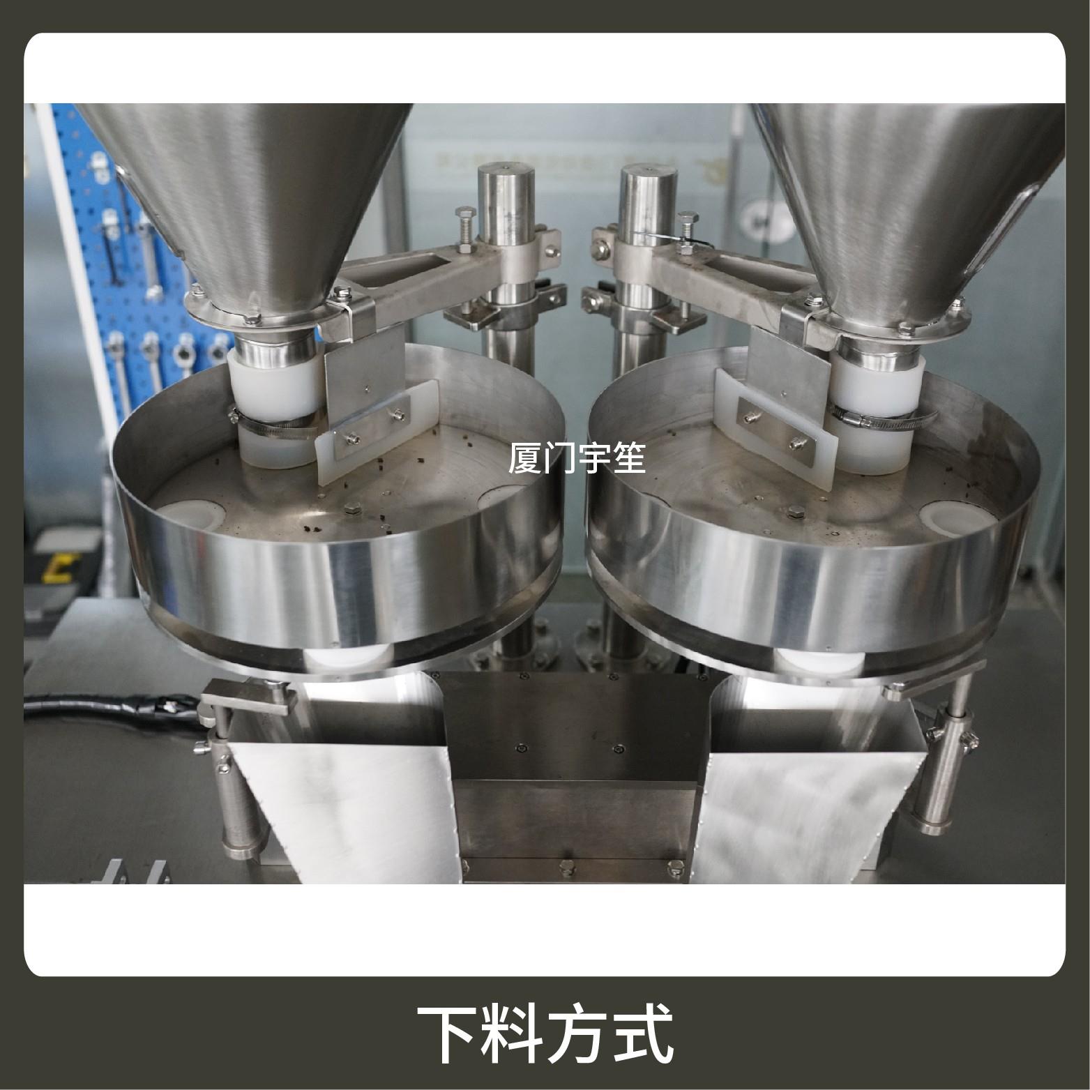 1、成品雙出,速度快,包裝流程全自動(dòng),無(wú)需人工操作??筛鶕?jù)充填物料的性質(zhì)選配不同的下料結(jié)構(gòu)。